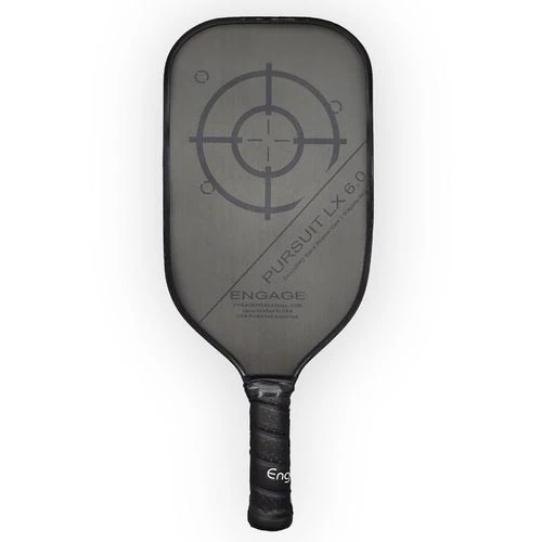 Introducing the Pursuit LX 6.0 Graphite paddle – the flagship paddle from Engage that has been in development for a long time to ensure it becomes one of the top-selling paddles (if not #1) in the sport. This paddle features a proprietary Graphite skin developed specifically for this paddle to work with the ‘black’ core, which is the softest core in the market. The combination of the skin and core makes this paddle unique and the most responsive paddle in the market, delivering reimagined control, power, and feel. The rough texture is the actual skin (not an overlay texture commonly used in the industry), ensuring that the texture lasts, and enhancing friction to ensure the ball stays longer on the paddle. With many combinations to fit most playing styles, including the LX (17″ x 7″) shape with a 5″ handle length, the 5/8″ thick core for maximum control and feel, and weighing in at 8.0 – 8.4 oz (Standard weight), the Pursuit LX 6.0 Graphite paddle is the ultimate choice for Pickleball players who want the best of the best.