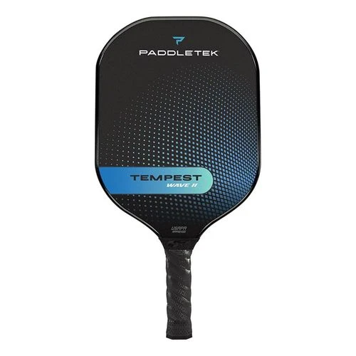A true player’s paddle, the Tempest Wave II from Paddletek offers you incredible control for strategic short games. The textured graphite surface makes it easy to place the ball exactly where you want it, and the graphite in the Tempest PolyCore dampens vibrations and reduces weight while still providing enough power for a put-away shot.